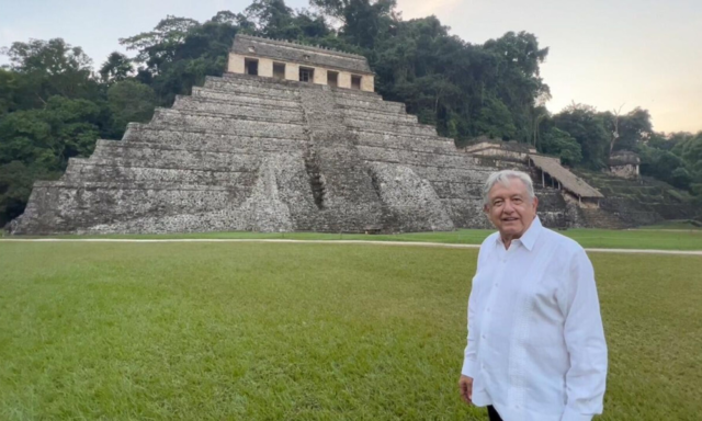 Con la zona arqueológica de Palenque, Chiapas, de fondo, el mandatario federal manifestó su optimismo sobre el futuro del país: