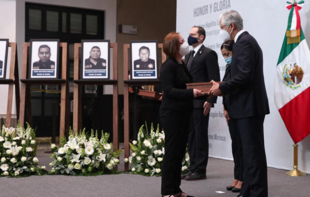 El gobernador Alfredo Del Mazo entregó reconocimientos a los familiares de los oficiales caídos y reconoció su labor heroica.